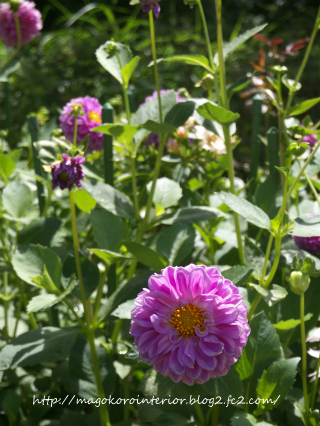 右側のピンクや紫の背の高いお花は、「クレオメ」です。