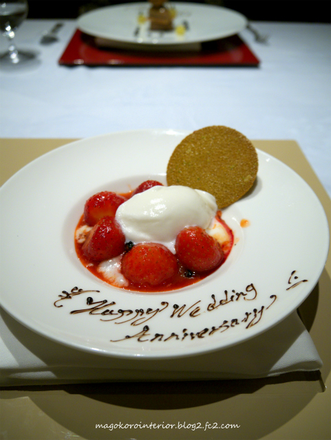 デザートにはHappy Wedding Anniversaryのメッセージ。嬉しいです。