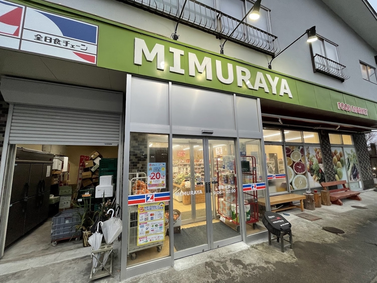 おしゃれな「MIMURAYA」の看板が目を引き、地元の雰囲気を感じられるお店です。