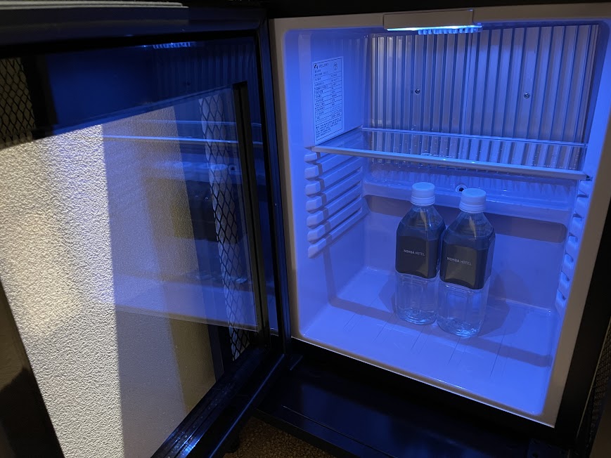 冷蔵庫はブラックライトで、ムードを壊さない設計。まるでクラブのような雰囲気。
