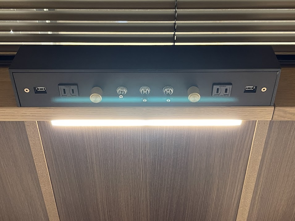 ヘッドボードに充電用のUSB端子と、電源、照明の調節スイッチがあり、こちらも綺麗です。