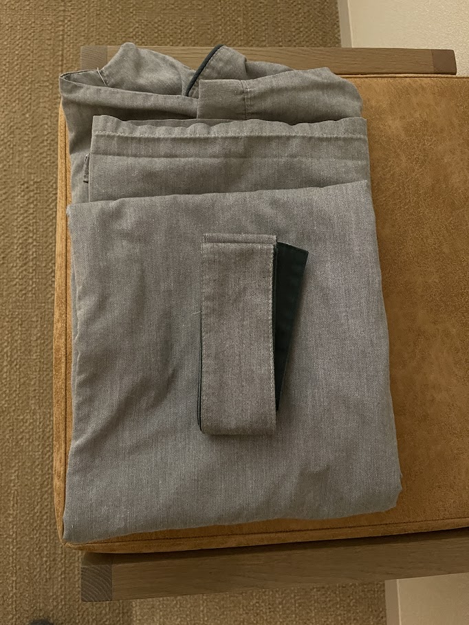 オリジナルルームウェアは、ピローと同じアトモスフェール・ジャポンのもので、やわらかい生地の着心地です。ガウン型になっています。