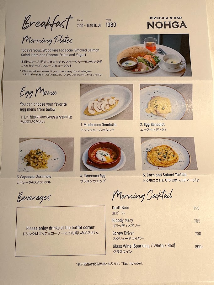 決まったモーニングプレートと、5種類の中から好きな卵料理を選べます。
