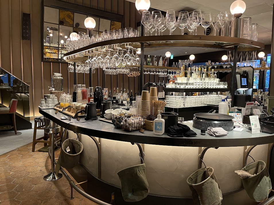 バーカウンターにドリンクが並んでいます。