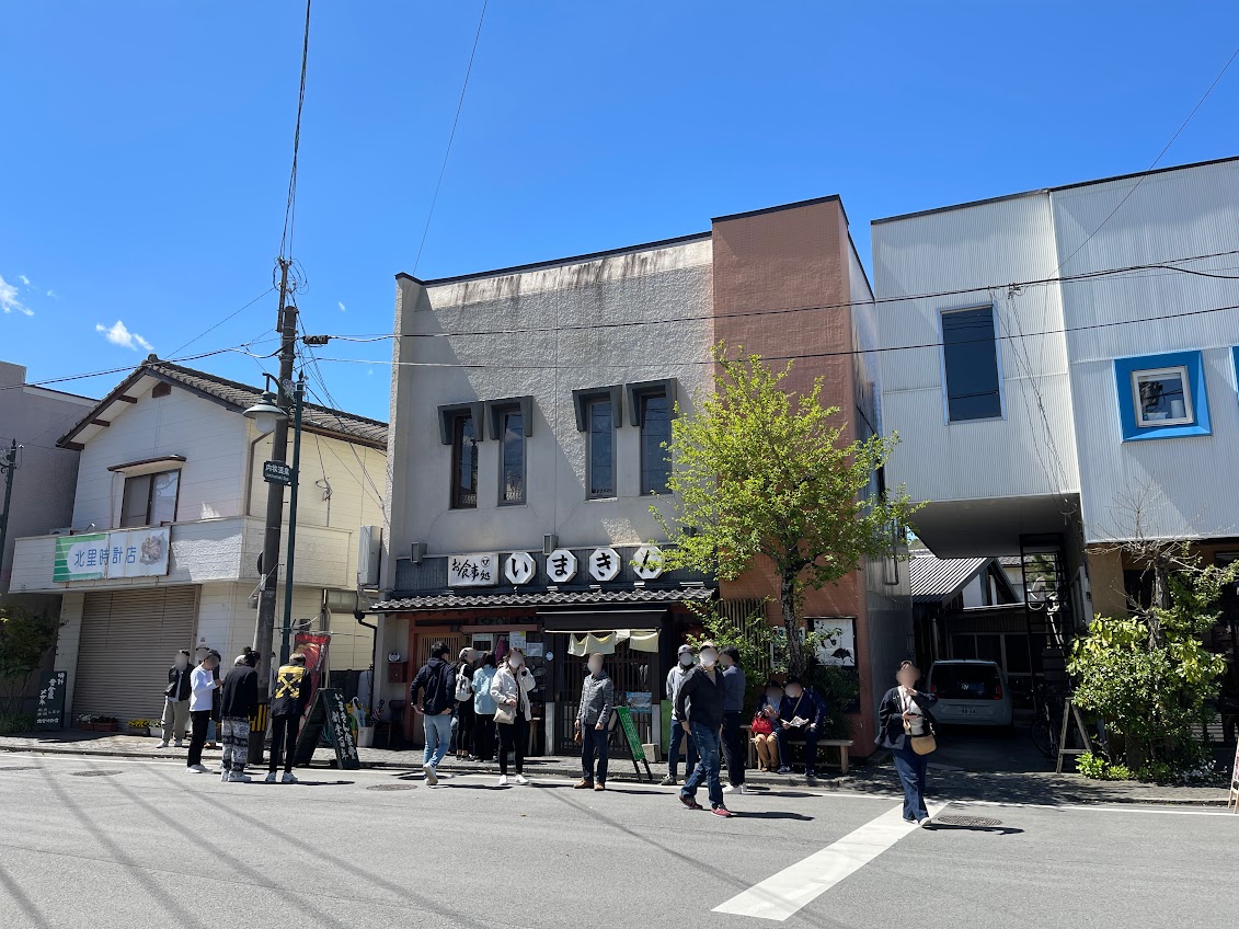 お店の前に行くとたくさんの人が待っていました。名前と人数を告げると12時半ちょっと前に戻ってくるようにと案内され、内牧周辺MAPを渡されました。受付番号は46番でした。