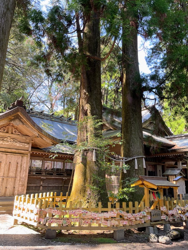 縁結びの神様として有名で、夫婦杉と呼ばれる根元が一つの2本の大杉が立派でした。
