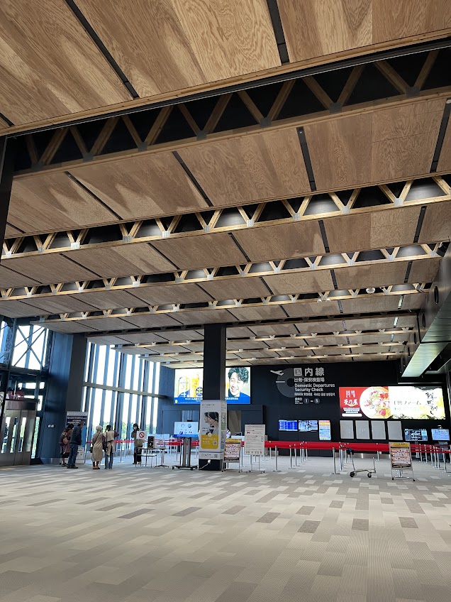 出迎えてくれたのは、木材の温かみが生かされた熊本の玄関にふさわしい素敵なデザインの空港でした。