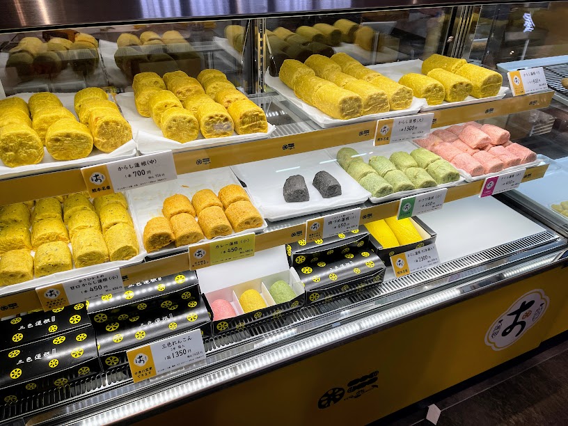 私たちは、おだ商店のカレー蓮根、阿蘇ナチュラル・Jファームの炭火スモークベーコン、阿蘇もろみ、フタバのふりかけ「ご飯の友」、海苔専門店風雅のふりかけ、のり天、石村萬盛堂のお菓子を購入しました。どれも美味しいのですが、カレー蓮根、スモークベーコン、のり天は特におすすめです。
