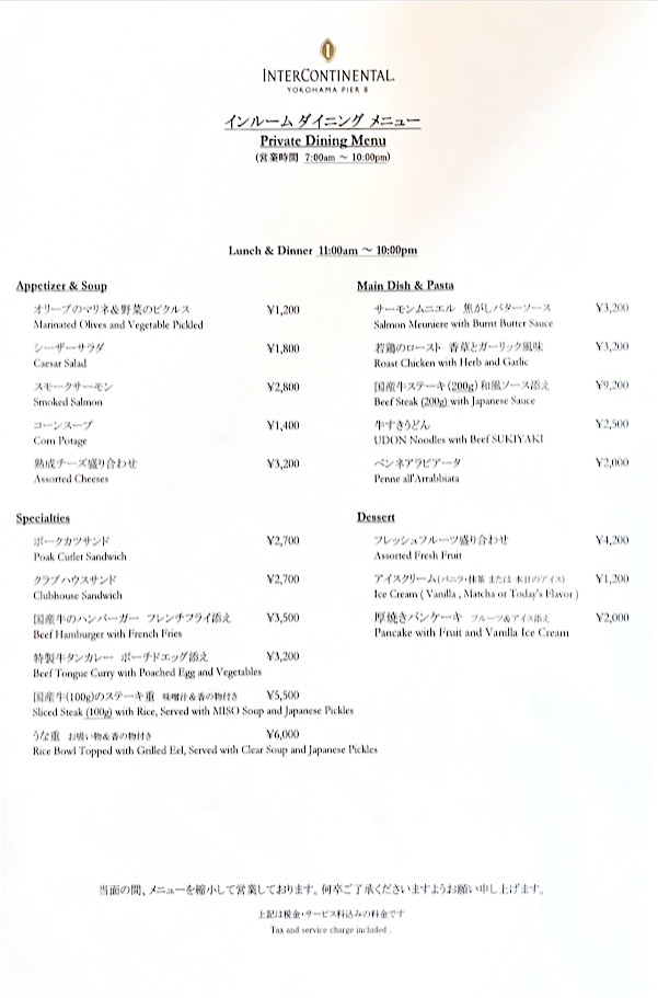 インルームダイニングの営業時間は、朝7時から夜10時までです。