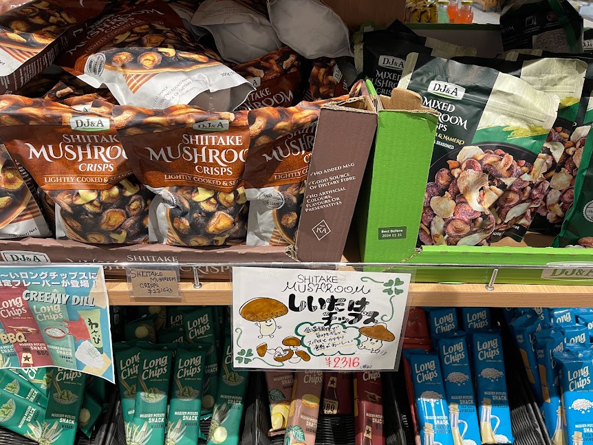 DJ&J のSHIITAKE MUSHROOM CRISPS「しいたけチップス」は美味しかったです。ただ、コストコオンラインで購入すると送料込みで1378円になるため、少し悲しい気持ちになりました。