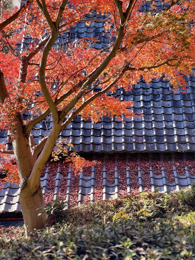 紅葉の葉が日本家屋の瓦に落ちてもなお、赤く綺麗でした。こちらは木春堂です。