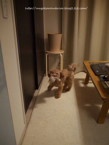 IKEAのテディベア、気に入っているのは分かるのですが こう口に咥えて歩いたり つかんで手放さない使い方はわかる。 でも、これは… 意識して見てはいそう・・・待ち伏せかしら。